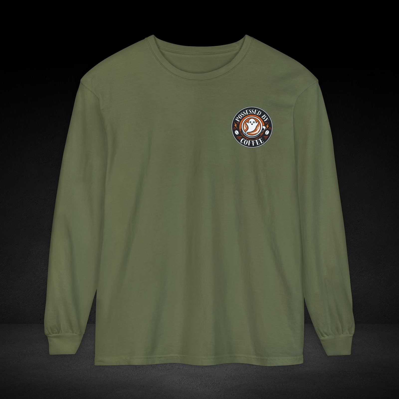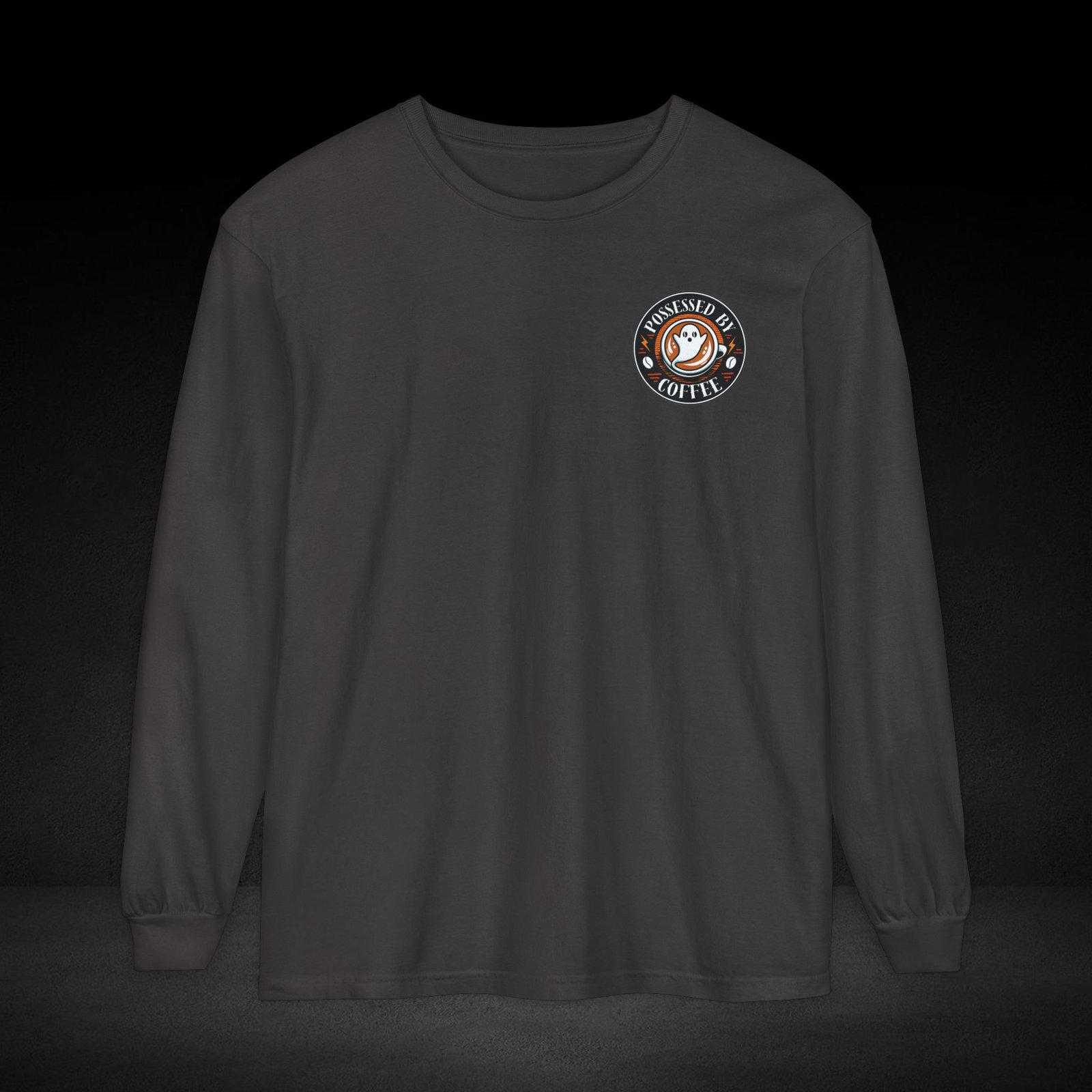 Possessed By Coffee Long Sleeve Tee – Ghost & Skull Coffee Art
