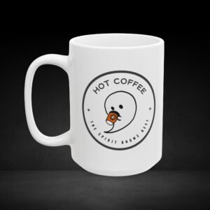 Awaken your inner spirit with the “Hot Coffee” mug — where ghostly charm meets caffeine devotion. Featuring a friendly ghost savoring a steaming cup of brew, this design reminds you that the spirit truly knows best when it comes to great coffee. Perfect for coffee lovers who crave a touch of the supernatural with every sip. A must-have for spooky season and beyond!