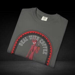 Fuel your inner dealmaker with this bold “Devil’s Coffee Break” tee. Featuring a sharply dressed devil holding a briefcase and steaming coffee, this design embodies dark charm and caffeine confidence. Perfect for coffee lovers who run on ambition and espresso, this soft cotton shirt delivers all-day comfort and a print that stands out with fiery detail.