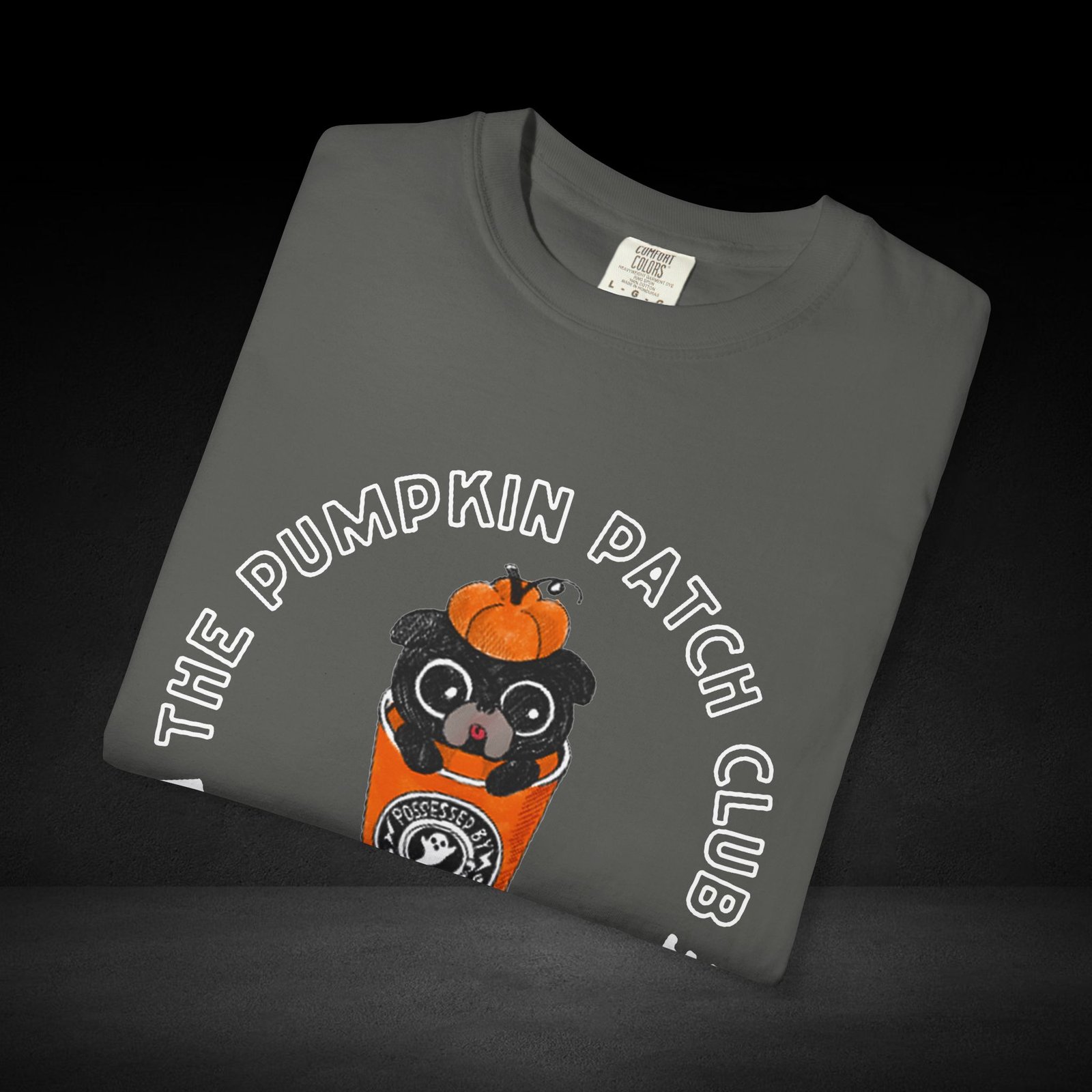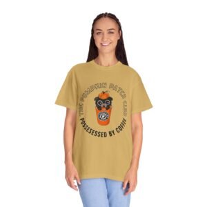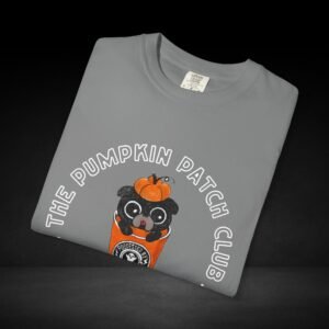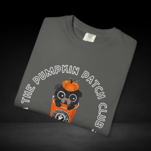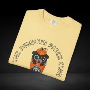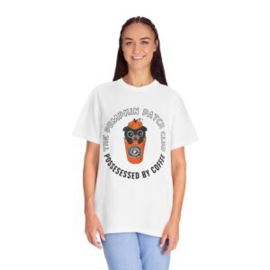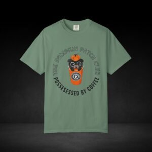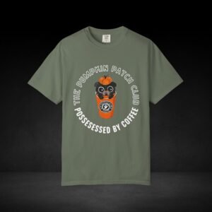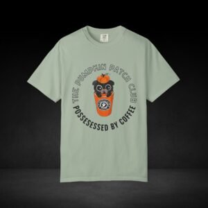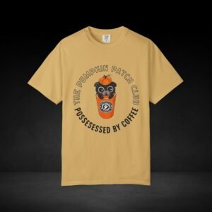 Join the Pumpkin Patch Club with this cozy fall-inspired tee! Featuring an adorable pug peeking out of a pumpkin-topped coffee cup labeled “Possessed by Coffee,” this shirt is a perfect mix of cute and caffeinated. Made from soft, premium cotton with a durable, vivid print, it’s ideal for pumpkin spice lovers, dog fans, and anyone who runs on seasonal coffee vibes.