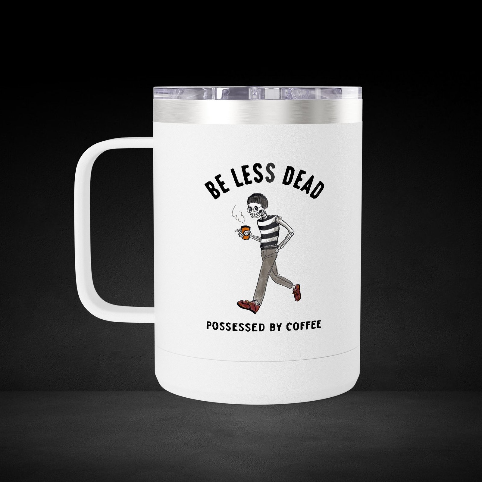 Be the first to review “Skeleton Stroll Coffee Mug – Cool Walking Skeleton with Steaming Cup – Possessed by Coffee Travel Mug”